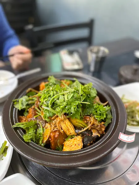 짙은 붉은색 양념이 눈길을 사로잡는 두루치기 위에는 신선한 미나리가 듬뿍 올려져 있었다. 젓가락으로 살짝 집어 맛보니, 매콤하면서도 달콤한 양념이 입안 가득 퍼져 나갔다. 돼지고기는 잡내 하나 없이 부드러웠고, 미나리의 향긋함이 느끼함을 잡아주어 환상의 조화를 이루었다. 특히, 뜨겁게 달궈진 뚝배기에 담겨 나와 오랫동안 따뜻하게 즐길 수 있다는 점이 좋았다.