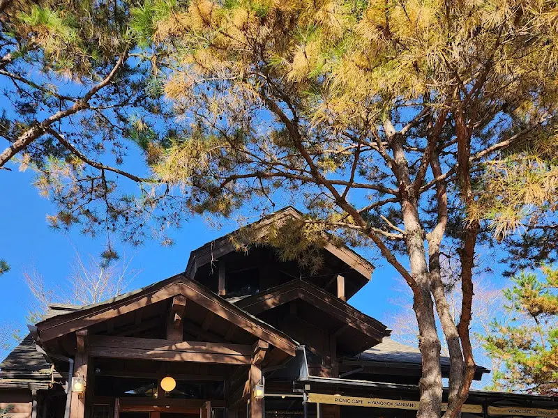 푸른 하늘과 조화를 이루는 카페의 아늑한 외관