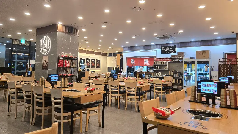 가산디지털단지역에서 내려, 복잡한 거리를 헤쳐나와 마침내 ‘부대옥’ 간판이 눈에 들어왔다. 넓고 쾌적한 매장이 한눈에 들어왔고, 깔끔한 인테리어가 인상적이었다. 평일 점심시간에는 주변 직장인들로 발 디딜 틈이 없다는데, 주말이라 그런지 비교적 한산한 모습이었다. 테이블 간 간격도 넓어서 편안하게 식사를 즐길 수 있을 것 같았다. 은은하게 퍼지는 부대찌개 특유의 냄새가 코를 간지럽혔다. 마치 어릴 적 할머니 댁에서 맡았던 푸근한 냄새처럼, 향긋하면서도 깊은 풍미가 느껴졌다.