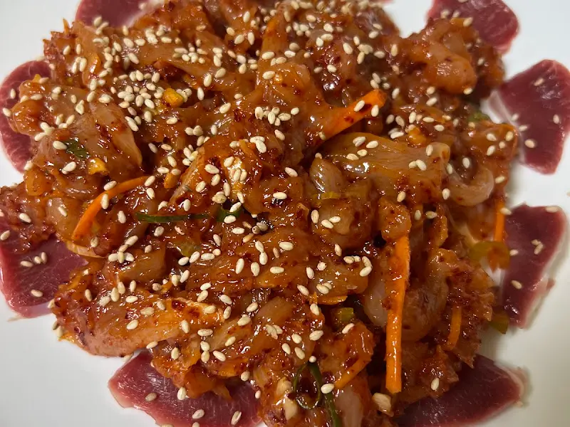 닭 육회를 한 점 집어 입에 넣으니, 신선한 닭고기의 풍미가 입안 가득 퍼져나갔습니다. 쫄깃한 식감과 함께 고소한 맛이 어우러져 정말 환상적이었습니다. 젓가락질을 멈출 수 없을 정도로 맛있었습니다. 닭 육회는 처음 먹어보는 음식이었지만, 그 매력에 푹 빠져버렸습니다. 신선한 닭고기를 사용했기에 가능한 맛이라는 생각이 들었습니다.