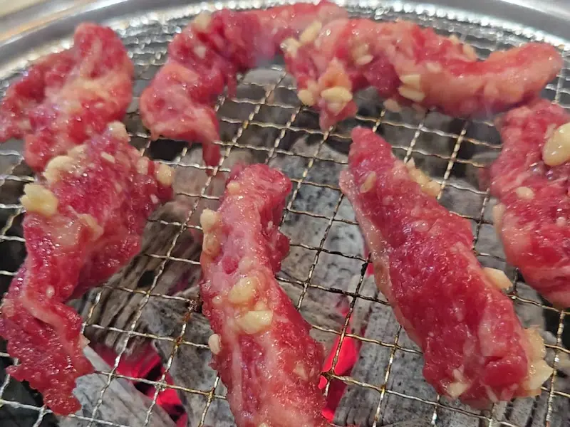 드디어, 기다리고 기다리던 첫 점을 맛볼 시간. 잘 익은 마늘갈비살 한 점을 집어 입안에 넣는 순간, 눈이 번쩍 뜨였다. 입안 가득 퍼지는 은은한 마늘 향과, 육즙 가득한 부드러운 갈비살의 조화는 그야말로 환상적이었다. 과하지 않은 달짝지근한 양념은 고기의 풍미를 더욱 깊게 만들어 줬다. 쉴 새 없이 젓가락을 움직이며, 정신없이 갈비살을 흡입했다.