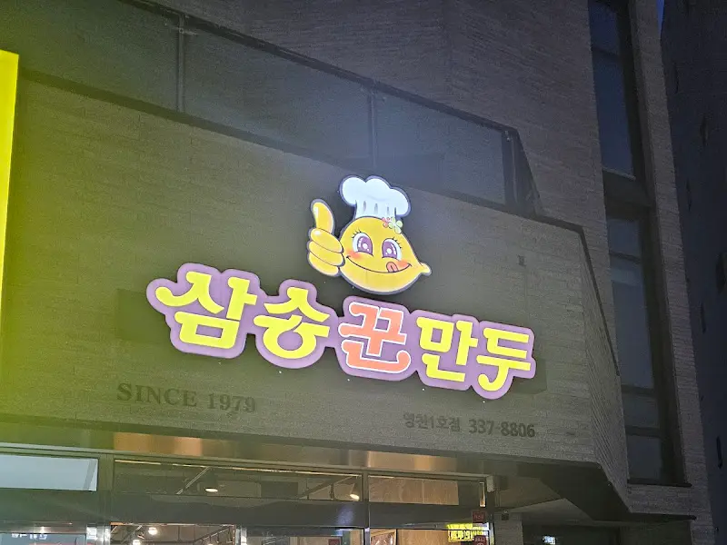 본점은 아쉽게도 일찍 문을 닫는다는 소식을 듣고, 야사동 지점으로 향했다. 네비게이션이 안내하는 대로 좁은 골목길을 따라 들어가니, 환한 불빛을 내뿜는 ‘삼송꾼만두’ 간판이 눈에 들어왔다. 노란색 바탕에 귀여운 만두 캐릭터가 그려진 간판은, 마치 어린 시절 동화책에서 튀어나온 듯한 친근함을 선사했다. 건물 외벽에 부착된 간판에는 ‘SINCE 1979’라는 문구가 선명하게 새겨져 있어, 이곳의 오랜 역사와 전통을 짐작하게 했다. 40년이 훌쩍 넘는 시간 동안 변함없이 이 자리를 지켜왔다니, 그 자체로도 감동이었다.