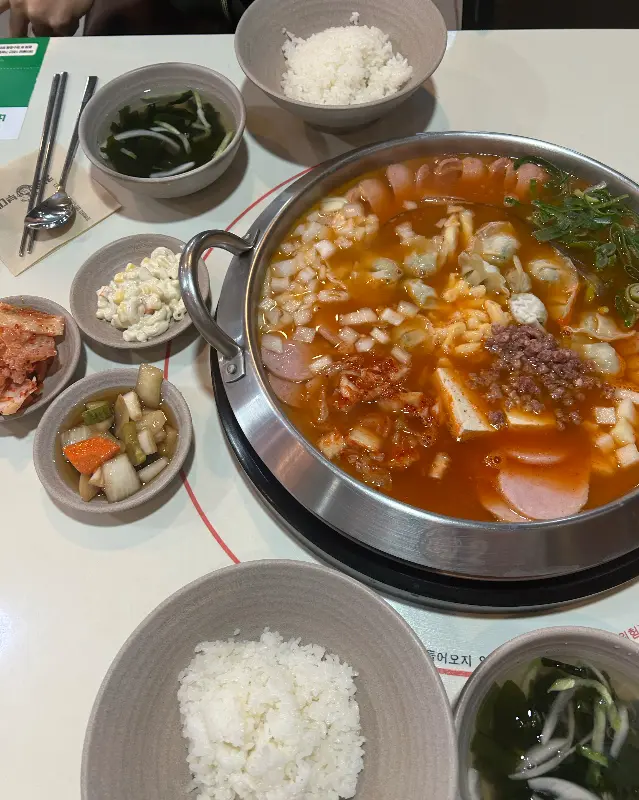 정신없이 먹다 보니, 어느새 땀이 송골송골 맺혔다. 매운 음식을 잘 못 먹는 나에게는 살짝 매콤했지만, 멈출 수 없는 중독성이 있었다. 뜨거운 국물을 들이켜니, 온몸이 따뜻해지는 기분이었다. 비 오는 날, 킹콩부대찌개를 선택한 것은 정말 탁월한 선택이었다.