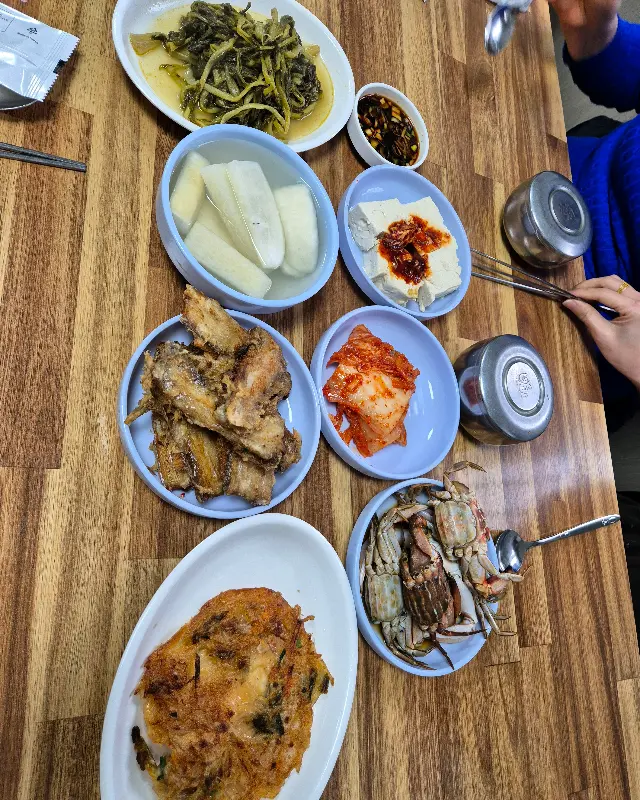밑반찬 하나하나에도 정성이 느껴졌다. 특히, 따뜻한 시래기나물은 부드러우면서도 고소한 맛이 일품이었다. 간장게장은 짭짤하면서도 감칠맛이 돌아 밥도둑이 따로 없었다. 김치전은 바삭바삭하면서도 매콤한 맛이 정말 좋았다. 쉴 새 없이 젓가락이 움직였다.