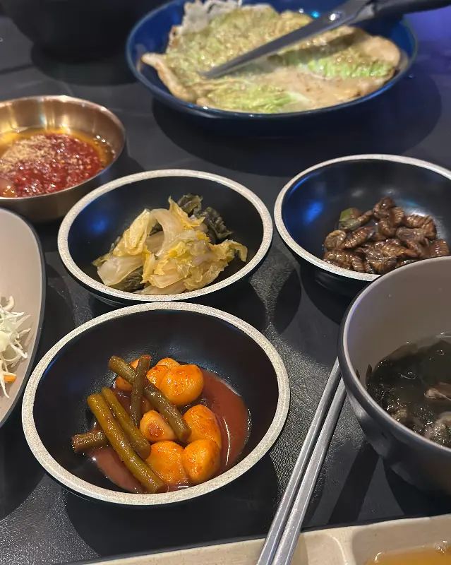 주문을 마치자, 밑반찬들이 하나둘씩 테이블 위에 차려지기 시작했다. 배추전, 미역국, 계란찜 등 푸짐한 구성에 감탄했다. 특히 배추전은 겉은 바삭하고 속은 촉촉해서 입맛을 돋우기에 충분했다. 아이들을 데리고 온 가족 손님들에게도 훌륭한 선택이 될 것 같았다.