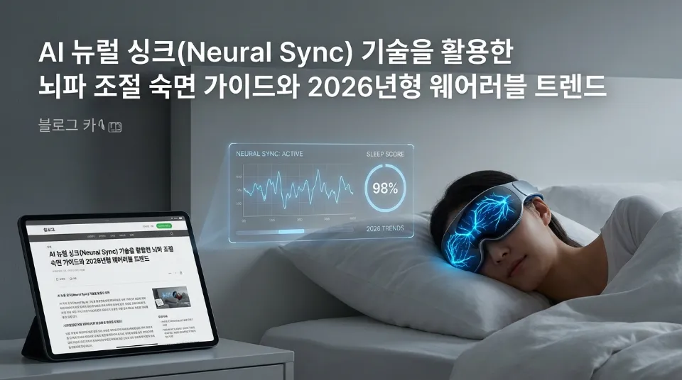 아무리 자도 피곤한 아침, 도대체 언제까지 ‘수면의 질이 나쁨’이라는 스마트워치의 알림만 보고 계실 건가요? 2026년 2월 현재, 슬립테크 시장은 단순한 모니터링을 넘어 적극적인 개입(Active Intervention)의 시대로 진입했습니다. 이제는 AI가 당신이 잠든 사이 실시간으로 뇌파를 분석하고, 가장 깊은 잠에 들 수 있도록 뇌파를 동기화하는 기술이 상용화되었습니다. 바로 ‘뉴럴 싱크(Neural Sync)’ 기술입니다. 오늘 포스팅에서는 수면 장애의 근본적인 해결책으로 떠오른 AI 뉴럴 싱크의 원리와 2026년 최신 웨어러블 트렌드를 심층 분석하여, 여러분의 밤을 완전히 바꾸어 놓을 실질적인 가이드를 제공합니다.