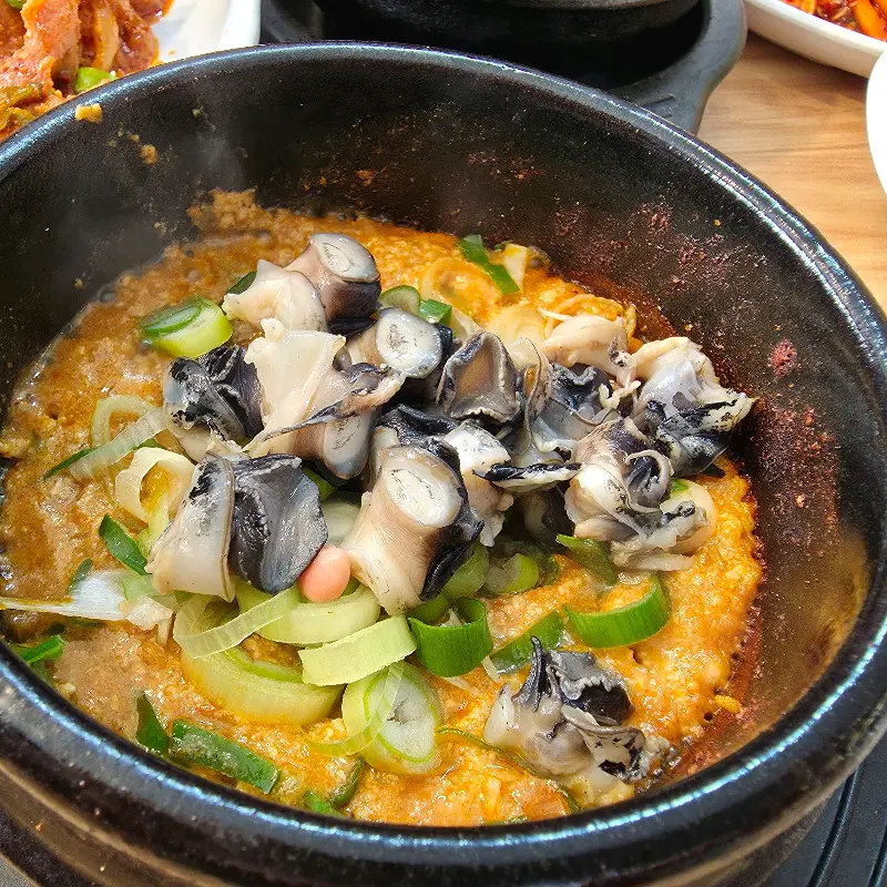 뜨끈한 된장찌개도 빼놓을 수 없었다. 두부, 애호박, 양파 등 다양한 채소가 듬뿍 들어간 된장찌개는 시원하면서도 칼칼한 맛이 일품이었다. 특히, 푹 익은 두부와 애호박은 입안에서 사르르 녹는 듯했다. 된장찌개 국물에 밥을 말아 쌈 채소와 함께 먹으니 정말 꿀맛이었다.
