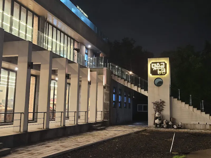 아침 일찍 서둘러 숙소를 나섰다. 네비게이션에 주소를 입력하고 차를 몰아 도착한 ‘대숲골농원’은, 기대했던 것 이상으로 아름다운 곳이었다. 넓은 주차장에 차를 대고 레스토랑 건물을 바라보니, 모던한 외관이 눈에 들어왔다. 특히 ‘대숲골농원’이라는 글자가 빛나는 간판 옆에 앙증맞은 판다 조형물들이 놓여 있어 더욱 친근하게 느껴졌다. 마치 비밀 정원으로 들어가는 듯한 설렘을 안고 안으로 발걸음을 옮겼다.
