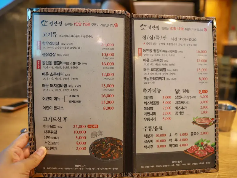 메뉴판을 펼쳐 들고 고민할 것도 없이, 오늘의 주인공인 소갈비찜을 선택했다. 매운맛을 어느 정도로 할까 잠시 망설였지만, 신라면 정도라는 중간맛으로 결정했다. 매운 음식을 즐기는 편이지만, 첫 방문이니만큼 적당한 선에서 맛을 보기로 한 것이다. 혹시나 매운맛이 부족할까 봐 최고 단계를 선택할까도 생각했지만, 다음을 기약하며 아껴두기로 했다.