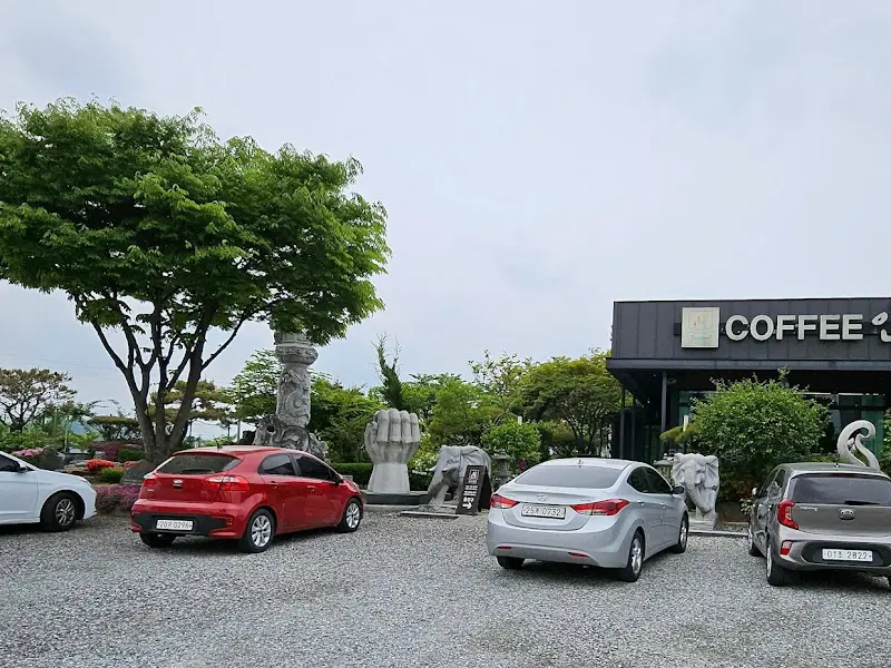카페에 들어서기 전부터, 넓은 주차 공간이 인상적이었다. 주차 걱정 없이 편안하게 방문할 수 있다는 점이 마음에 들었다. 카페 외관은 모던하면서도 세련된 느낌을 자아냈다. 무심하게 툭 놓인 듯한 조형물들이 주변 풍경과 어우러져 독특한 분위기를 연출하고 있었다. 마치 비밀스러운 정원으로 들어가는 듯한 설렘을 안고 안으로 발걸음을 옮겼다.