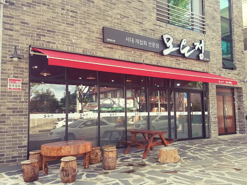 모은정은 최근 축협 옆으로 이전했다고 한다. 예전의 허름한 모습은 온데간데없이, 깔끔한 벽돌 건물이 눈에 띄었다. 붉은색 어닝과 통유리창 너머로 보이는 따뜻한 조명이 발길을 이끌었다. 예전에는 가정집을 개조해서 운영했다고 들었는데, 이제는 완전히 새로운 모습으로 변신한 것이다. 밖에는 나무 테이블과 의자가 놓여 있어, 식사 후 잠시 쉬어가기에도 좋을 듯했다.