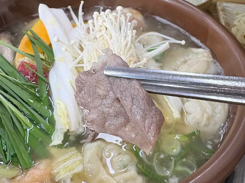 만두와 함께 얇게 슬라이스된 소고기도 맛보았다. 뜨거운 국물에 살짝 익힌 소고기는 입에 넣자마자 사르르 녹아내렸다. 질기거나 퍽퍽하지 않고, 부드러우면서도 고소한 풍미가 일품이었다. 만두와 소고기를 함께 먹으니, 그 조화가 더욱 훌륭했다. 담백한 만두와 고소한 소고기가 어우러져 입안에서 환상의 듀엣을 연주하는 듯했다.