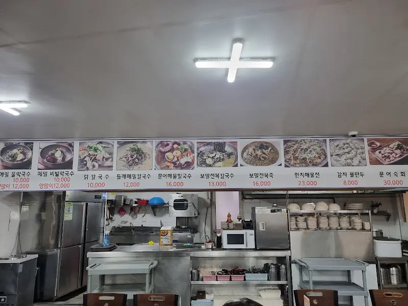 식당 안으로 들어서자, 정갈하게 정돈된 테이블들이 눈에 들어왔다. 이른 시간임에도 불구하고 식사를 즐기는 사람들이 꽤 있었다. 분주하게 움직이는 직원들의 모습에서 활기찬 에너지가 느껴졌다. 벽면에 붙어있는 메뉴판을 보니, 다양한 종류의 칼국수와 막국수가 준비되어 있었다. 그중에서도 나의 시선을 사로잡은 것은 단연 ‘보말전복칼국수’였다. 제주도의 특산물인 보말과 전복이 들어간 칼국수라니, 그 맛이 어떨지 상상하는 것만으로도 입안에 침이 고였다.