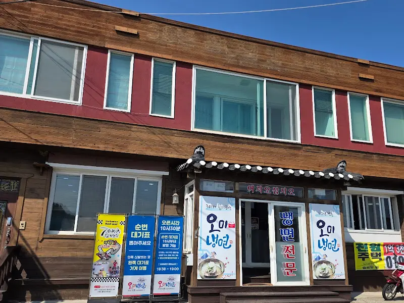 하늘은 더없이 맑았고, 햇살은 따스하게 쏟아졌다. 마치 미식 여행을 축복이라도 하듯, 모든 것이 완벽한 날이었다. 굽이굽이 이어진 길을 따라 도착한 오미냉면은, 외관부터 예사롭지 않았다. 붉은색과 나무색이 조화롭게 어우러진 2층 건물은 한눈에도 오랜 역사를 자랑하는 듯했다.