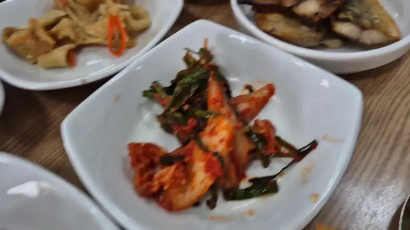 특히, 갓 구워져 나온 듯 따끈한 고등어구이는 짭짤하면서도 고소한 맛이 일품이었다. 겉은 바삭하고 속은 촉촉한 완벽한 조화! 김치찌개가 나오기도 전에 젓가락이 쉴 새 없이 움직였다. 콩나물무침은 아삭한 식감과 은은한 참기름 향이 입맛을 돋우었고, 어묵볶음은 달콤 짭짤한 양념이 밥을 부르는 맛이었다.
