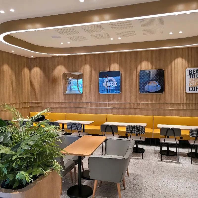 가장 먼저 눈에 띈 것은 넓고 깨끗한 내부였다. 테이블 간 간격도 넉넉하게 배치되어 있어 다른 사람의 방해 없이 오롯이 나만의 시간을 즐길 수 있을 것 같았다. 벽면은 따뜻한 느낌의 나무 소재로 마감되어 있었고, 곳곳에 놓인 화분들이 싱그러움을 더했다. 특히 마음에 들었던 것은 편안한 소파 좌석이었다. 몸을 깊숙이 파묻고 기대앉으니 마치 나만을 위한 공간에 온 듯한 기분이 들었다. 푹신한 소파에 몸을 기대고 앉아 메뉴를 골랐다.
