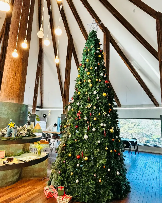 특히 시선을 사로잡은 것은 카페 중앙에 놓인 거대한 크리스마스 트리였다. 알록달록한 오너먼트와 반짝이는 조명이 트리 전체를 감싸고 있어, 마치 동화 속 세계에 들어온 듯한 느낌을 자아냈다. 트리 아래에는 작은 선물 상자들이 놓여 있어, 크리스마스 분위기를 한층 더 고조시켰다. 연말에 가족들과 함께 방문하여 좋은 추억을 만들었다는 리뷰가 떠올랐다.