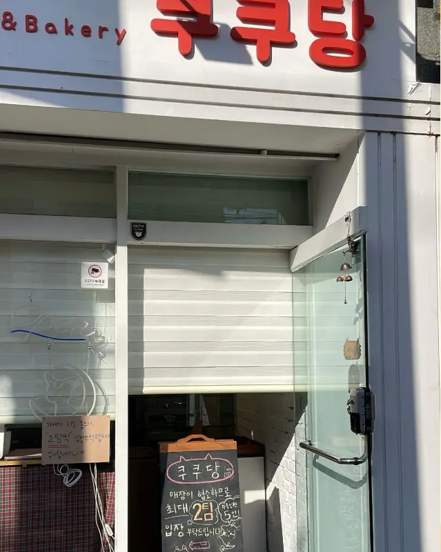 쿠쿠당은, 마치 동화 속에 나올 법한 아기자기한 공간이었다. 하얀색 외관에 빨간색 글씨로 쓰인 ‘쿠쿠당’ 간판은 멀리서도 눈에 띄었다. 가게 앞에는 메뉴 안내와 함께, 앙증맞은 고양이 캐릭터 그림이 그려진 입간판이 세워져 있었다. 고양이를 좋아하는 나로서는 그냥 지나칠 수 없는 매력이었다.