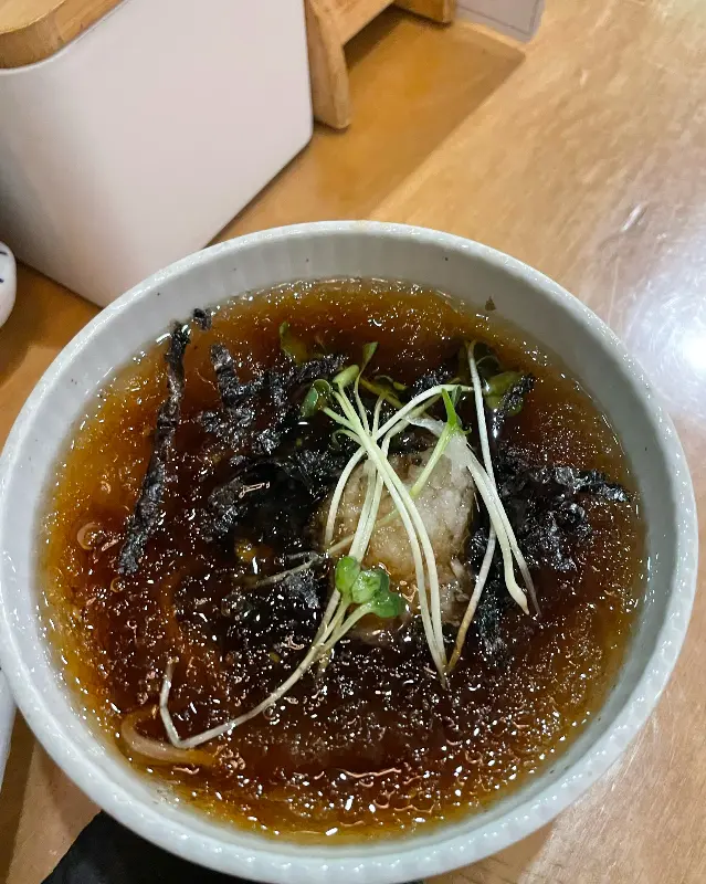 여름에 다시 방문했을 때는 시원한 모밀을 맛보았다. 쯔유는 짜지 않고 은은한 단맛이 감돌았고, 살얼음이 동동 떠 있어 더위를 잊게 해주는 청량감이 느껴졌다. 면발은 쫄깃했고, 김가루와 쪽파, 와사비를 넣어 먹으니 풍미가 더욱 살아났다.