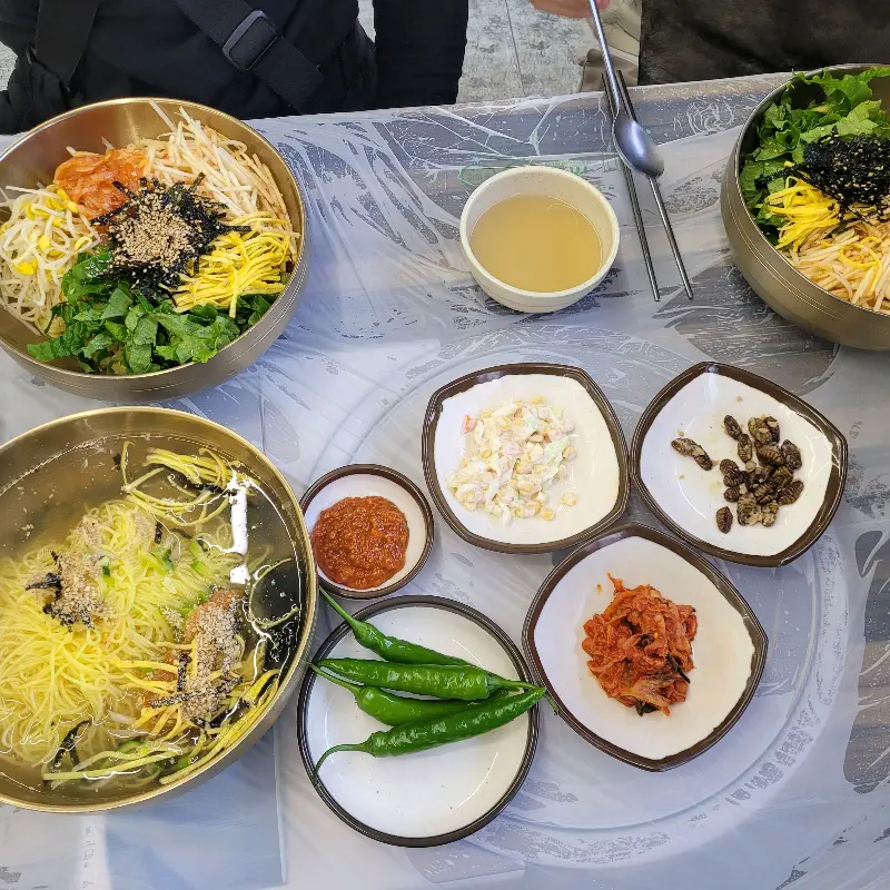 곁들여 나오는 반찬들도 하나하나 정성이 느껴졌다. 특히, 콩나물, 김치, 번데기는 국수와 함께 먹으니 더욱 맛깔스러웠다. 부족한 반찬은 셀프바에서 마음껏 가져다 먹을 수 있다는 점도 좋았다.