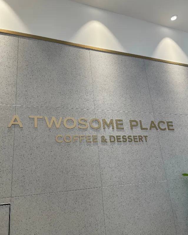 카페에 들어서자마자 은은하게 퍼지는 커피 향이 코를 간지럽혔다. 깔끔하고 넓은 매장은 2층까지 이어져 있었는데, 특히 2층에는 스터디룸까지 마련되어 있어 공부하거나 모임을 갖기에도 안성맞춤이라는 인상을 받았다. 마치 아늑한 다락방 같은 분위기의 공간은, 어디에 앉을지 한참을 고민하게 만들 정도로 매력적이었다. 벽면에 새겨진 “A TWOSOME PLACE COFFEE & DESSERT”라는 금색 글자는 은은한 조명 아래 고급스러움을 더했다.