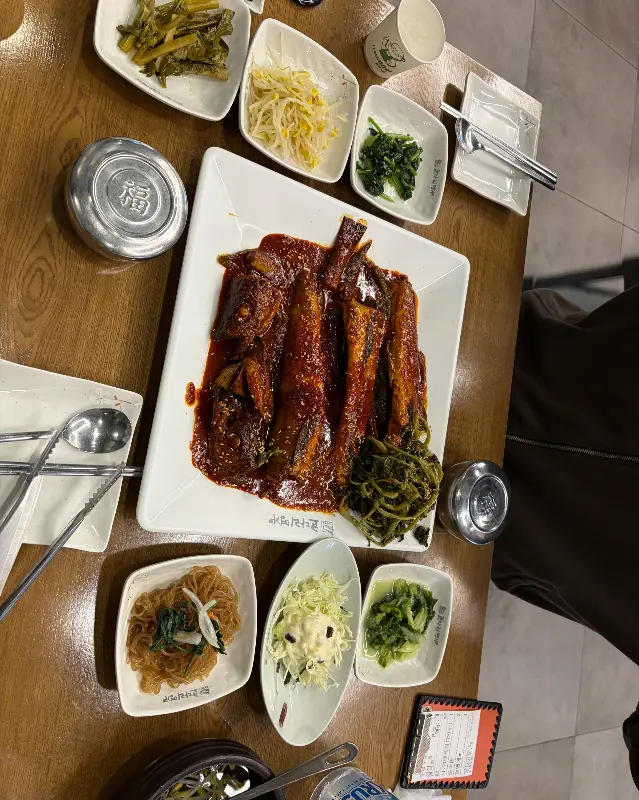 주문 후 얼마 지나지 않아, 정갈하게 차려진 밑반찬들이 식탁 위를 가득 채웠다. 윤기가 자르르 흐르는 잡채, 아삭한 샐러드, 시원한 콩나물국까지, 하나하나 정성이 느껴지는 맛깔스러운 반찬들이었다. 특히, 이곳은 반찬을 무한리필로 즐길 수 있다는 점이 큰 매력으로 다가왔다. 슴슴한 듯하면서도 감칠맛 도는 반찬들은 매콤한 코다리 조림과의 환상적인 조화를 예감하게 했다.