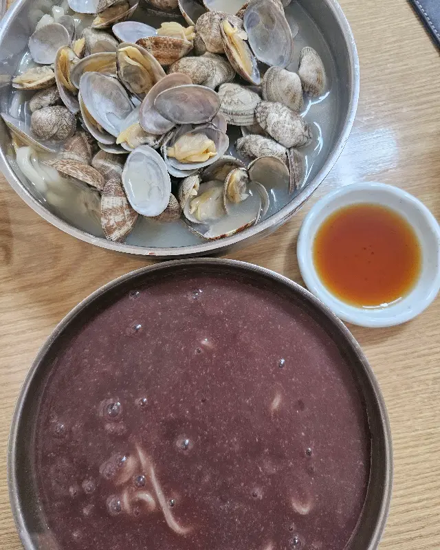 문을 열고 들어서자, 따뜻한 온기와 함께 맛있는 냄새가 코를 간지럽혔다. 테이블마다 놓인 칼국수 그릇에서는 김이 모락모락 피어오르고, 사람들은 저마다 만족스러운 표정으로 면을 후루룩거리고 있었다. 나도 모르게 침이 꼴깍 넘어갔다. 자리를 잡고 앉아 메뉴판을 펼쳐보니, 바지락칼국수와 팥칼국수가 메인 메뉴인 듯했다. 바지락 특유의 시원한 맛과 팥의 달콤함, 둘 다 포기할 수 없었기에 고민 끝에 바지락칼국수와 팥칼국수를 하나씩 주문했다. 여기에 바지락부추전까지 추가하니, 완벽한 한 상이 될 것 같았다.