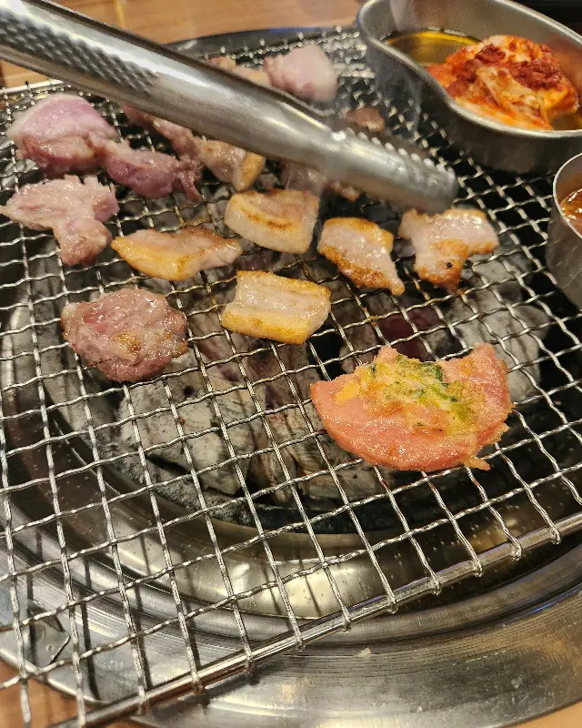 가게 문을 열자, 따뜻한 온기가 나를 맞이했다. 테이블마다 옹기종기 모여 앉아 고기를 굽는 사람들의 모습은, 마치 오랜만에 만난 가족처럼 정겹게 느껴졌다. 숯불이 피어오르는 화로 위에서 지글거리는 고기 소리는, 어린 시절 저녁 식사 시간을 떠올리게 하는 향긋한 추억의 소리였다.