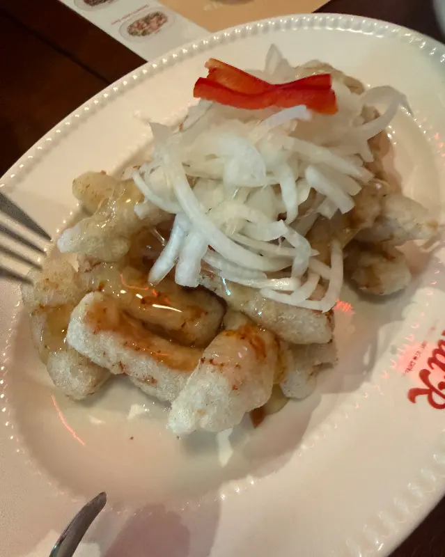 차알의 탕수육은 겉은 바삭하고 속은 쫄깃한 식감이 일품이다. 특히, 탕수육 위에 얹어진 양파 슬라이스는 느끼함을 잡아주고 신선함을 더한다.