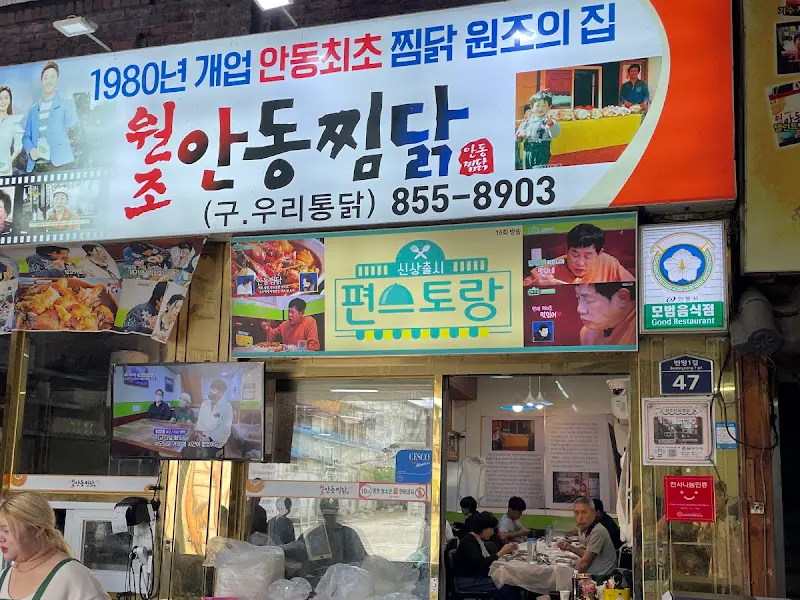 안동, 그 이름만 들어도 마음 한구석이 아련해지는 곳. 오래된 역사와 전통이 살아 숨 쉬는 그곳으로 훌쩍 떠나기로 결심했다. 목적은 단 하나, 진짜 안동찜닭의 원조를 맛보는 것이었다. 서울에서 몇 번이고 먹어봤지만, 왠지 모르게 안동에서 먹는 찜닭은 다를 것 같다는 강렬한 예감이 들었다. 안동역에 내리자마자 구시장으로 향했다. 좁다란 골목길을 따라 걷다 보니, 드디어 그 유명한 “원조안동찜닭” 간판이 눈에 들어왔다.