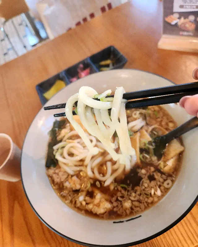 마지막으로 맛본 순두부 짬뽕우동은, 기대 이상의 맛이었다. 짬뽕 스타일의 얼큰한 국물에 순두부와 우동 면발이 어우러진, 독특하면서도 매력적인 메뉴였다. 붉은 빛깔을 뽐내는 국물은 보기만 해도 침샘을 자극했고, 매콤한 향이 코를 간지럽혔다. 국물을 한 입 맛보니, 칼칼하면서도 깊은 맛이 온몸을 감쌌다. 과하게 맵지 않고 적당히 얼큰해서, 매운 음식을 잘 못 먹는 나도 부담 없이 즐길 수 있었다. 순두부는 어찌나 부드러운지, 입안에서 사르르 녹아내렸다. 쫄깃한 우동 면발은 얼큰한 국물과 환상적인 조화를 이루었고, 땀을 뻘뻘 흘리면서도 멈출 수 없는 중독적인 맛이었다.