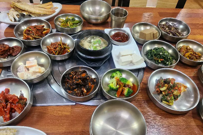 점심시간이 되자 식당 안은 손님들로 북적였다. 예약 손님이 아니면 자리를 잡기 힘들 정도였다. 나는 미리 예약을 해둔 덕분에 기다림 없이 자리에 앉을 수 있었다. 자리에 앉자마자 시골밥상처럼 푸짐한 밑반찬들이 눈 앞에 펼쳐졌다. 놋그릇에 담긴 정갈한 반찬들은 하나하나 윤기가 흘렀고, 보기만 해도 입맛이 다셔졌다.