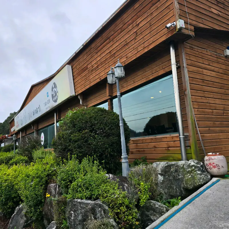 차를 몰아 도착한 곳은 겉부터가 예사롭지 않았다. 마치 시골집에 놀러 온 듯한 푸근한 외관이 인상적이었다. 나무로 지어진 건물은 주변 풍경과 자연스럽게 어우러졌고, 덩굴 식물들이 벽을 타고 올라가는 모습은 정겨움을 더했다. 넓은 주차장은 편안하게 차를 댈 수 있도록 배려한 듯했다.