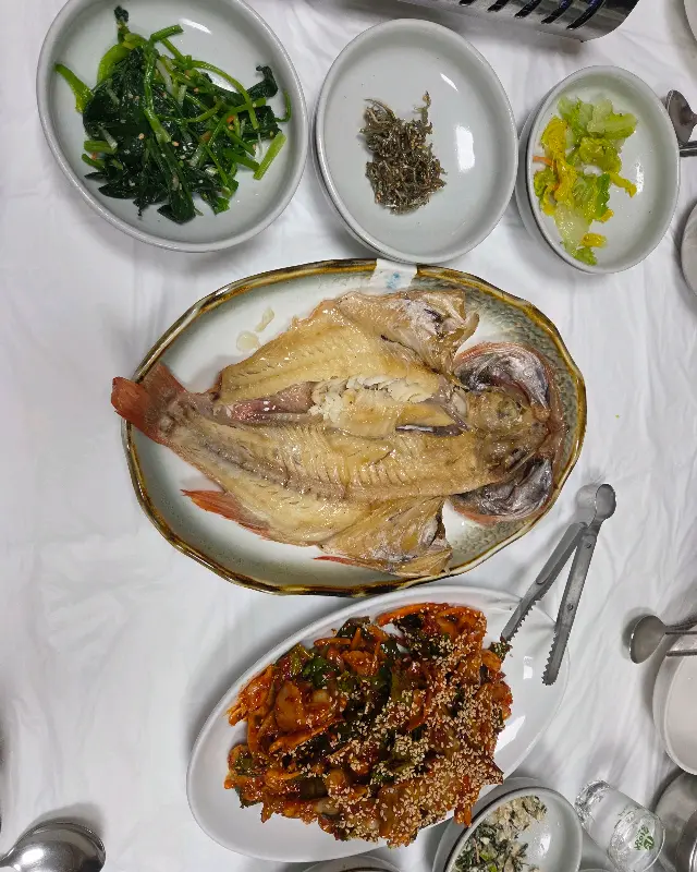 밑반찬 하나하나 정성이 느껴지는 맛이었다. 특히, 잘 익은 김치는 아삭하면서도 시원한 맛이 일품이었고, 짭짤한 젓갈은 밥도둑이 따로 없었다. 나물은 신선하고 향긋했으며, 자반고등어는 겉은 바삭하고 속은 촉촉해서 밥반찬으로 훌륭했다. 마치 할머니가 손수 만들어주신 듯한 따뜻한 맛에 감동했다. 다른 테이블을 보니, 반찬이 너무 맛있다며 반찬통을 가져와 포장해가는 손님도 있었다.