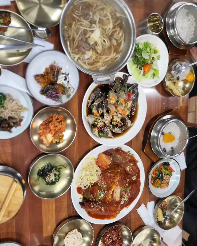 메뉴판을 찬찬히 살펴보니, 옥돔정식, 간장게장 정식 등 다양한 한식 메뉴들이 준비되어 있었다. 어머니는 이미 마음속으로 정해두셨던 듯 옥돔정식을, 나는 쭈꾸미 정식을 주문했다. 잠시 후, 테이블 위로 하나 둘씩 반찬들이 차려지기 시작했다. 마치 임금님 수라상이라도 받은 듯, 상다리가 휘어질 정도로 푸짐한 한 상 차림에 입이 떡 벌어졌다.
