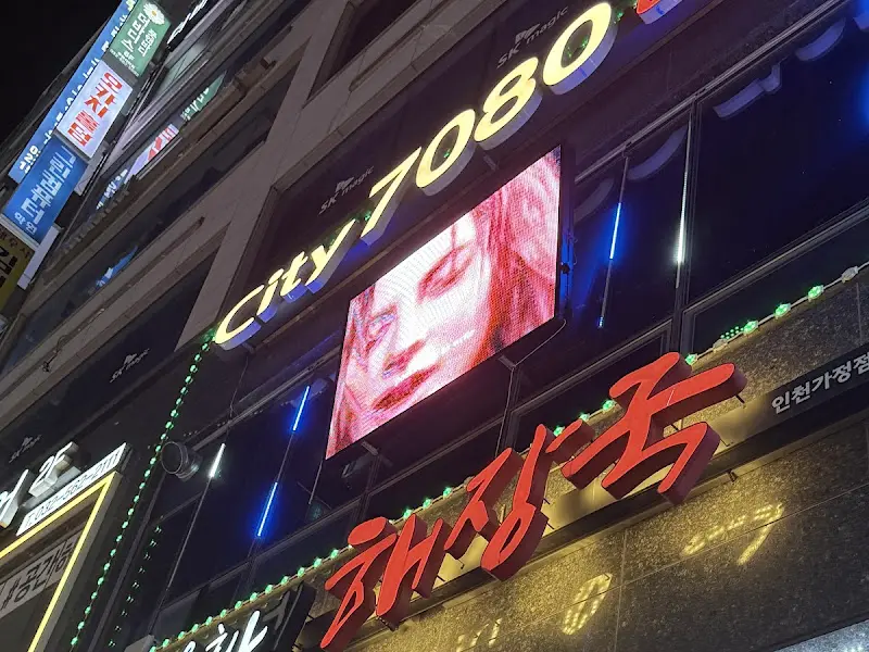 가게 앞에 도착하니, 붉은색 강렬한 글씨체의 간판이 눈에 확 들어왔다. 마치 제주의 어느 골목길에 서 있는 듯한 착각이 들 정도였다. “City 7080″이라는 네온사인과 함께 보이는 여인의 얼굴이 그려진 간판은 묘하게 복고적인 분위기를 자아냈다.