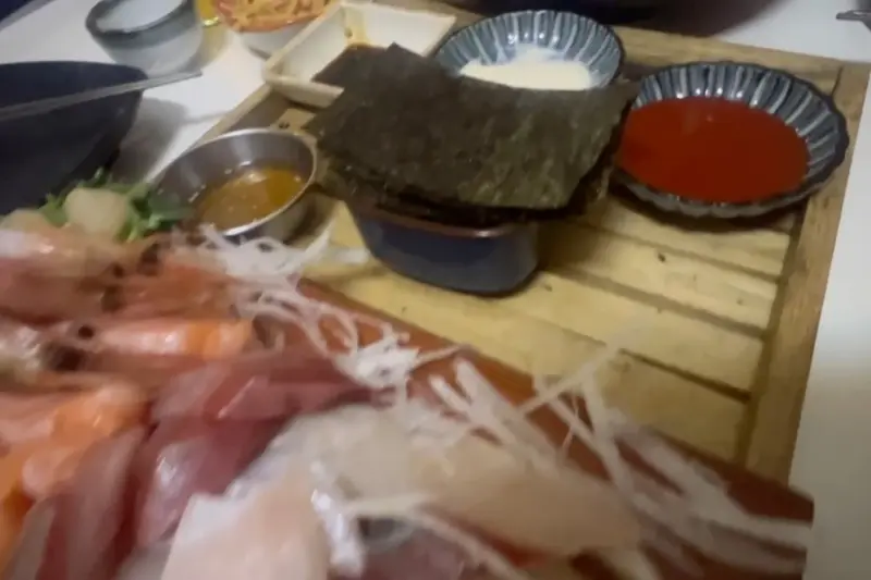 메뉴판을 펼쳐 들자, 다양한 종류의 사시미와 초밥, 덮밥, 그리고 일품요리들이 눈에 들어왔다. 무엇을 먹을까 고민하다가, 이곳의 대표 메뉴라는 ‘모듬 사시미’를 주문했다. 싱싱한 해산물을 맛보고 싶다는 강렬한 욕구가, 나를 사로잡았기 때문이다. 잠시 후, 드디어 기다리고 기다리던 모듬 사시미가 나왔다. 나무로 된 넓적한 트레이 위에, 마치 보석처럼 빛나는 사시미들이 정갈하게 담겨 있었다.