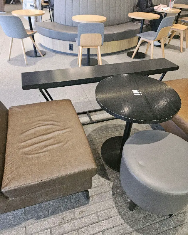 문을 열고 들어서자, 생각보다 훨씬 넓고 쾌적한 공간이 눈 앞에 펼쳐졌다. 높은 천장과 은은한 조명, 그리고 테이블 간 간격이 넓어 답답함 없이 편안한 느낌을 주었다. 평일 오후 시간이었음에도 불구하고, 삼삼오오 모여 담소를 나누는 사람들, 노트북을 펼쳐놓고 작업에 몰두하는 사람들, 그리고 혼자만의 시간을 즐기는 사람들로 북적였다. 활기 넘치는 분위기 속에서도 각자의 시간을 존중하는 듯한 조용한 공존이 인상적이었다. 에서처럼 다양한 테이블과 의자가 마련되어 있어, 혼자 방문하든 여럿이 함께하든 각자의 취향에 맞는 자리를 고를 수 있다는 점도 매력적이었다.