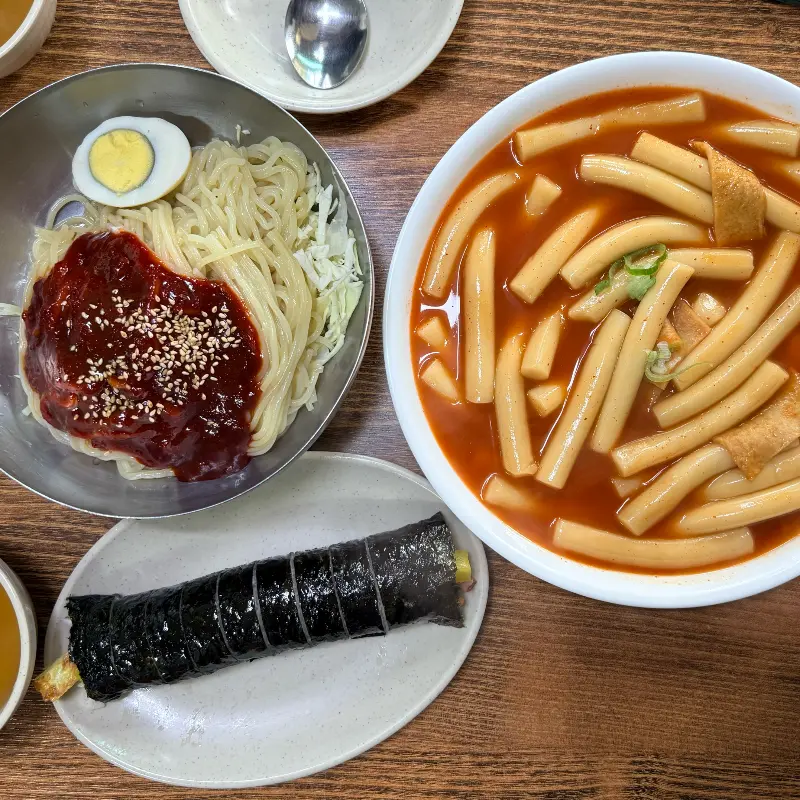 드디어 제 차례가 되어 자리에 앉았습니다. 테이블 위에는 이미 떡볶이, 김밥, 쫄면 등 다양한 메뉴들이 놓여 있었습니다. 메뉴판을 보니 가격도 정말 착했습니다. 요즘 같은 시대에 이런 가격으로 떡볶이를 맛볼 수 있다니, 그저 감사할 따름입니다.