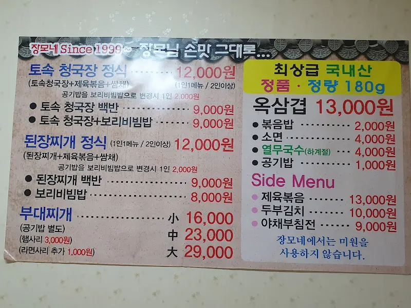 식사를 마치고 가게를 나서는 길, 옷에 밴 청국장 냄새가 조금 신경 쓰였지만, 맛있는 음식을 먹었다는 만족감이 훨씬 컸다. 장모네토속청국장은 멀리서 찾아올 정도의 특별한 맛집은 아니지만, 매봉중학교나 선비마을 근처에서 청국장이 생각날 때 부담 없이 들르기 좋은 곳이다.