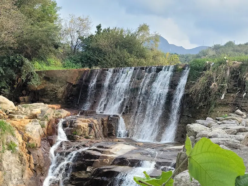 웅장한 폭포가 흐르는 카페 우즈의 전경