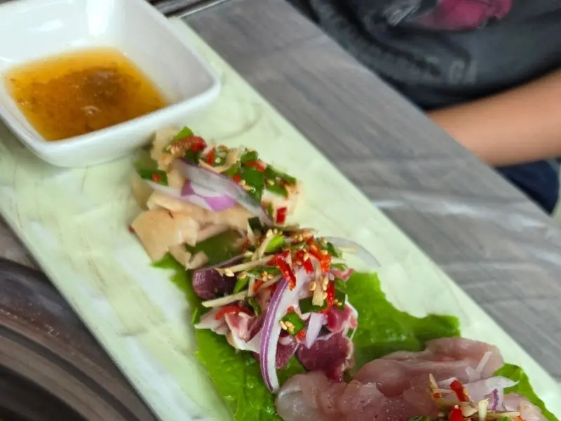 드디어 기다리고 기다리던 산닭구이 코스가 시작되었다. 가장 먼저 나온 것은 닭육회였다. 닭 가슴살과 닭 근위, 닭 껍질 세 종류로 이루어진 육회는 처음 보는 비주얼에 살짝 긴장했지만, 이내 신선함에 감탄했다. 붉은 빛깔의 육회는 윤기가 자르르 흘렀고, 곁들여진 채소들은 싱그러움을 더했다. 젓가락으로 조심스럽게 육회를 집어 입에 넣는 순간, 말로 표현할 수 없는 황홀경이 펼쳐졌다. 닭고기 특유의 쫄깃함과 신선함이 입안 가득 퍼져 나갔다. 전혀 비리지 않았고, 오히려 고소한 맛이 느껴졌다. 마치 어릴 적 할머니가 갓 잡은 닭으로 육회를 만들어주시던 추억이 떠오르는 맛이었다. 참기름 향이 은은하게 풍기면서 입맛을 돋우었다.
