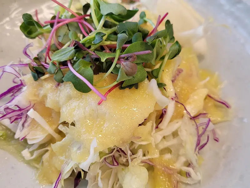 가장 먼저 샐러드에 눈길이 갔다. 신선한 채소 위에 상큼한 드레싱이 뿌려져 있었는데, 입안 가득 퍼지는 싱그러움이 식욕을 돋우었다. 샐러드에 사용된 채소는 모두 청양에서 직접 재배한 것이라고 했다. 역시, 로컬푸드는 신선함이 남다르다는 것을 다시 한번 느낄 수 있었다.