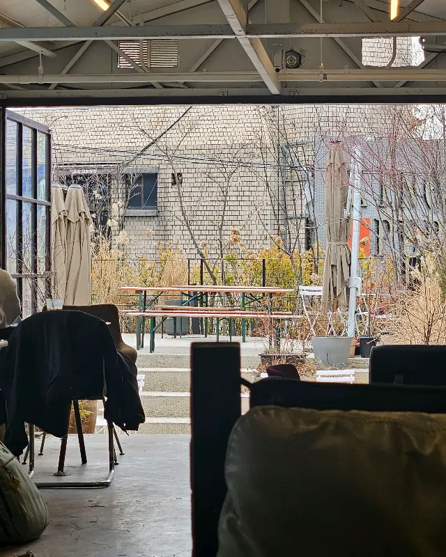 특히 눈길을 끌었던 것은 야외 테라스였다. 마치 도심 속 작은 정원처럼 꾸며진 공간은, 답답한 일상에서 벗어나 잠시 휴식을 취하기에 안성맞춤이었다. 파라솔 아래 놓인 테이블에 앉아 따스한 햇살을 만끽하며 커피를 마시는 상상을 하니, 벌써부터 마음이 설렜다. 조금 더 따뜻해지면 루프탑도 개방한다고 하니, 그때 다시 방문해야겠다는 생각을 했다.