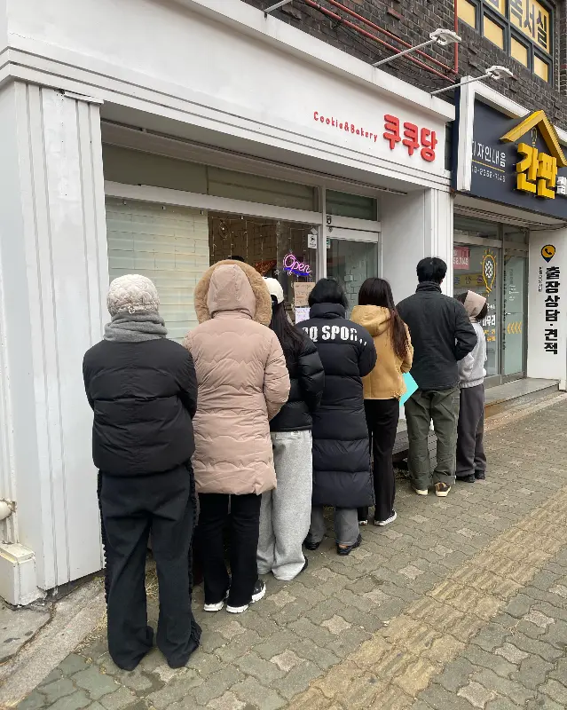 기다리는 동안, 쿠쿠당의 인기를 실감할 수 있었다. 쉴 새 없이 울리는 전화벨 소리, “두바이 쫀득볼 예약 가능한가요?”라는 문의에 “죄송합니다, 예약은 어렵습니다”라고 답하는 직원의 목소리가 연신 들려왔다. 내 뒤로도 줄은 점점 더 길어졌다. 매장 앞에는 ‘두바이 쫀득쿠키 1인 6개 구매 제한’이라는 안내문이 붙어 있었다. 이 푯말이 괜히 붙어있는 게 아니라는 걸 직감했다.