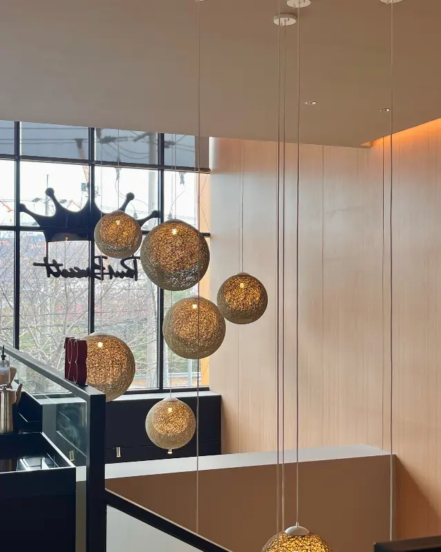 문을 열자, 깔끔하게 정돈된 공간이 눈에 들어왔다. 2층으로 향하는 계단 옆으로는 은은한 조명이 비추는 테이블들이 놓여 있었고, 높은 천장 덕분에 답답함 없이 탁 트인 느낌을 받을 수 있었다.