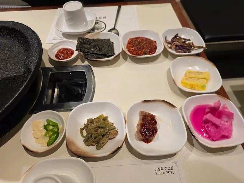 고기를 먹는 중간중간, 밑반찬들도 곁들여 먹었다. 잘 익은 김치는 아삭한 식감과 매콤한 맛이 일품이었고, 짭짤한 깻잎 장아찌는 밥 도둑이 따로 없었다. 특히 계란찜은 부드러운 식감과 담백한 맛으로 입 안을 깔끔하게 정리해주는 역할을 했다. 밑반찬 하나하나에도 정성이 느껴지는 맛이었다.