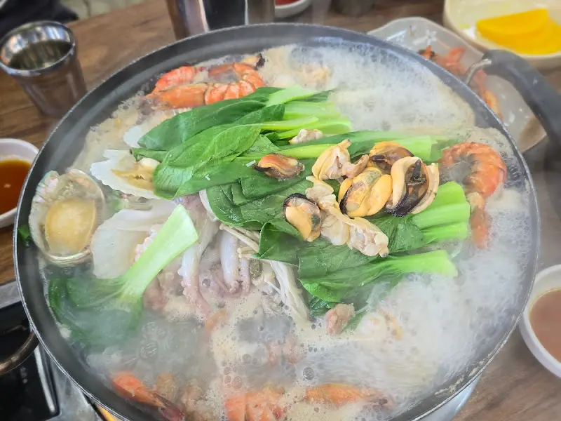 가장 먼저 국물부터 맛보았다. 시원하면서도 깊은 맛이 입안 가득 퍼져 나갔다. 각종 해산물에서 우러나온 감칠맛과 시원한 바다 향이 어우러져, 정말 잊을 수 없는 맛이었다. 특히 신선한 홍합과 굴은 입안에서 톡톡 터지는 듯했고, 쫄깃한 낙지와 전복은 씹는 재미를 더했다.