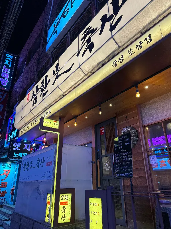 밤에 찍은 식당 외부 사진