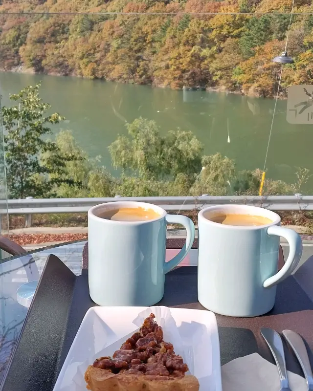 조심스럽게 한 모금 마셔보니, 쌉쌀하면서도 깊은 풍미가 입안 가득 퍼져 나갔다. 산미가 적당히 느껴지는 커피는 내가 딱 좋아하는 스타일이었다. 커피를 마시며 창밖을 바라보니, 저수지 위로 햇살이 부서지며 반짝이는 모습이 눈에 들어왔다. 마치 보석을 뿌려놓은 듯 아름다운 풍경을 감상하며 마시는 커피는, 그 맛을 더욱 특별하게 만들어 주었다.